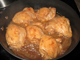 Chicken thighs are significantly higher in fat than chicken breasts, however, they are more flavorful and less expensive. To reduce the amount of fat I remove all the skin and any excess fat. I brown the thighs on each side and then pour the marinade over the top, cover and simmer for 30 minutes or so. I turn them every once in a while so both sides get a lot of the marinade flavoring. You don’t have to use a lot of marinade, a little goes a long way. When it’s done I use the marinade left in the pan to flavor the rice.