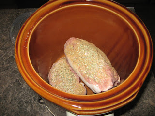 For the longest time I would take meat out of the freezer and thaw it in the fridge before I put it into the crockpot so I had to plan ahead and remember to take the meat out and then a friend told me that you don’t have to thaw it out, just put it right in the crockpot frozen. I tried it and it works, just add a little extra cooking time. This morning I put a (frozen) pork roast in the crockpot from a whole pork loin that I cut up, see my tutorial How to get 5 meals out of a whole pork loin. I added some cumin, garlic, salt, pepper, my plan is to shred it and make enchiladas for dinner tonight. I’ll post it tonight, I’m going to try to make it one of my $5.00 Meals, we’ll see if I can do it.