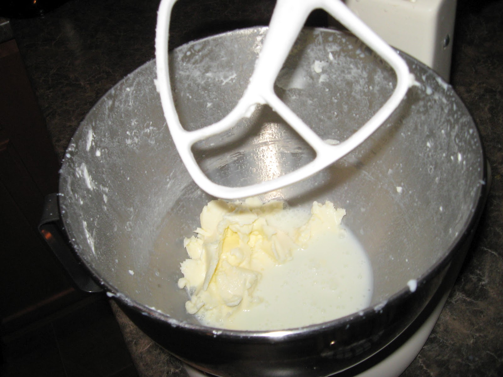 Before you know it I’m going to be plowing fields and milking cows, just kidding but I did make my own butter for the first time yesterday. I think I made it when I was a kid and the teacher brought in a jar of whipping cream and all the kids took turns shaking it until it turned into butter, I didn’t have a classroom of children to do the work for me so I used my Kitchenaid. On Monday I posted an article How to make your own whipped cream using heavy whipping cream, if you can do that then you are halfway there. First take your heavy whipping cream out of the fridge and let it sit and warm up a little bit, I used 1/2 pint of the heavy whipping cream to start out with since it was my first time making it, after it’s room temperature pour into your mixing bowl and start mixing on medium.