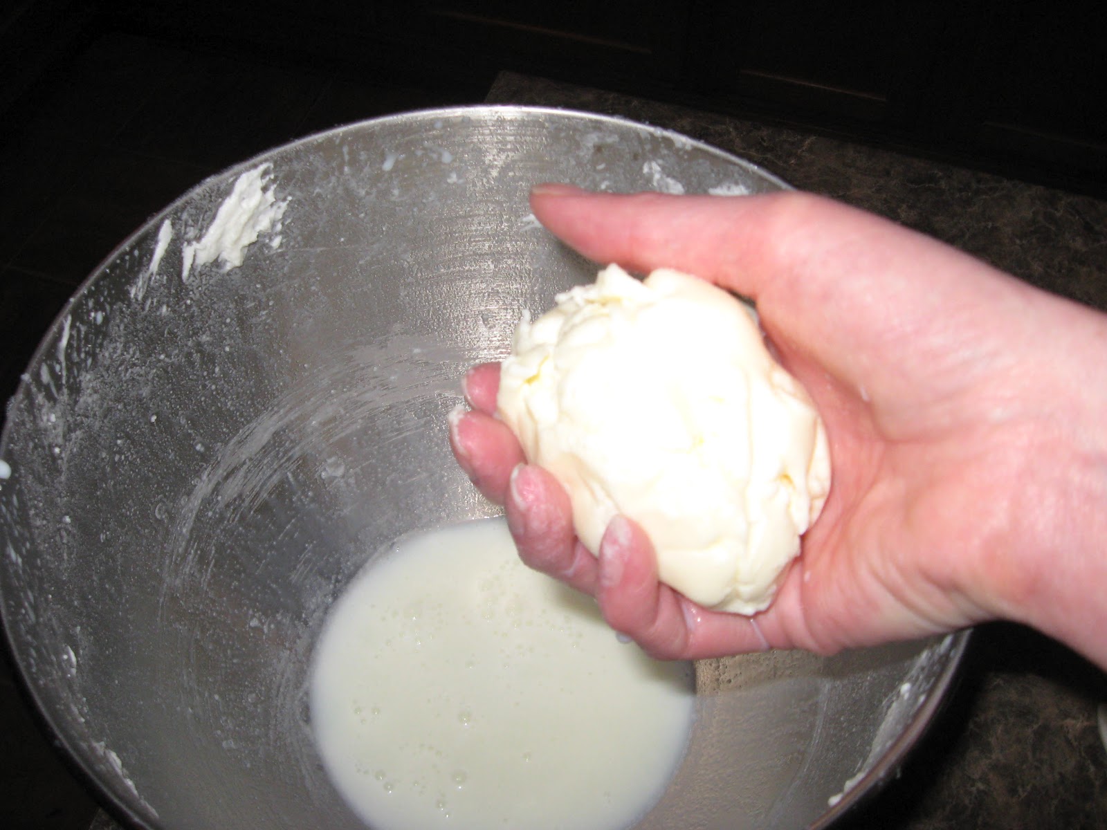 I took it out when it was a ball and rinsed it in cold water, I didn’t know what to do with the buttermilk so I tossed it, next time I will save it and use it in something. You can also add a little salt, I didn’t this time but it’s still delicious.