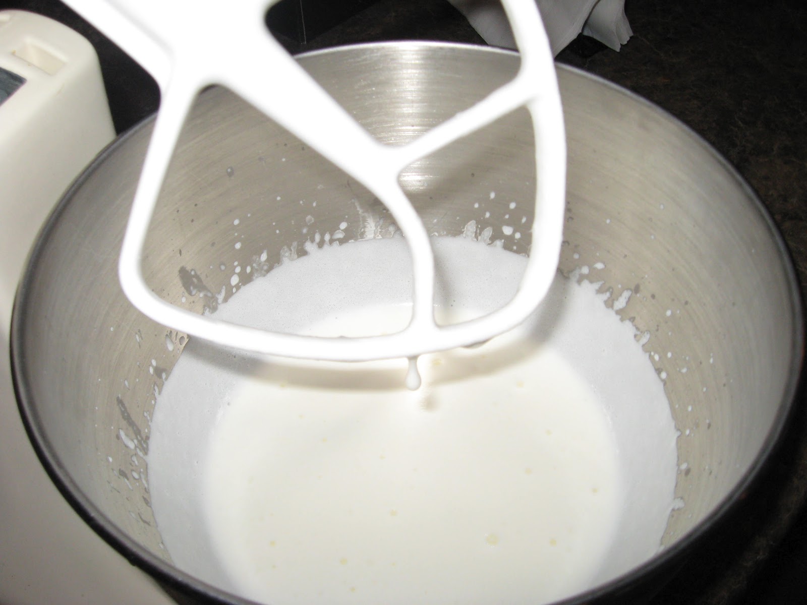 When it starts looking like whipped topping you are about halfway there, just keep mixing!
