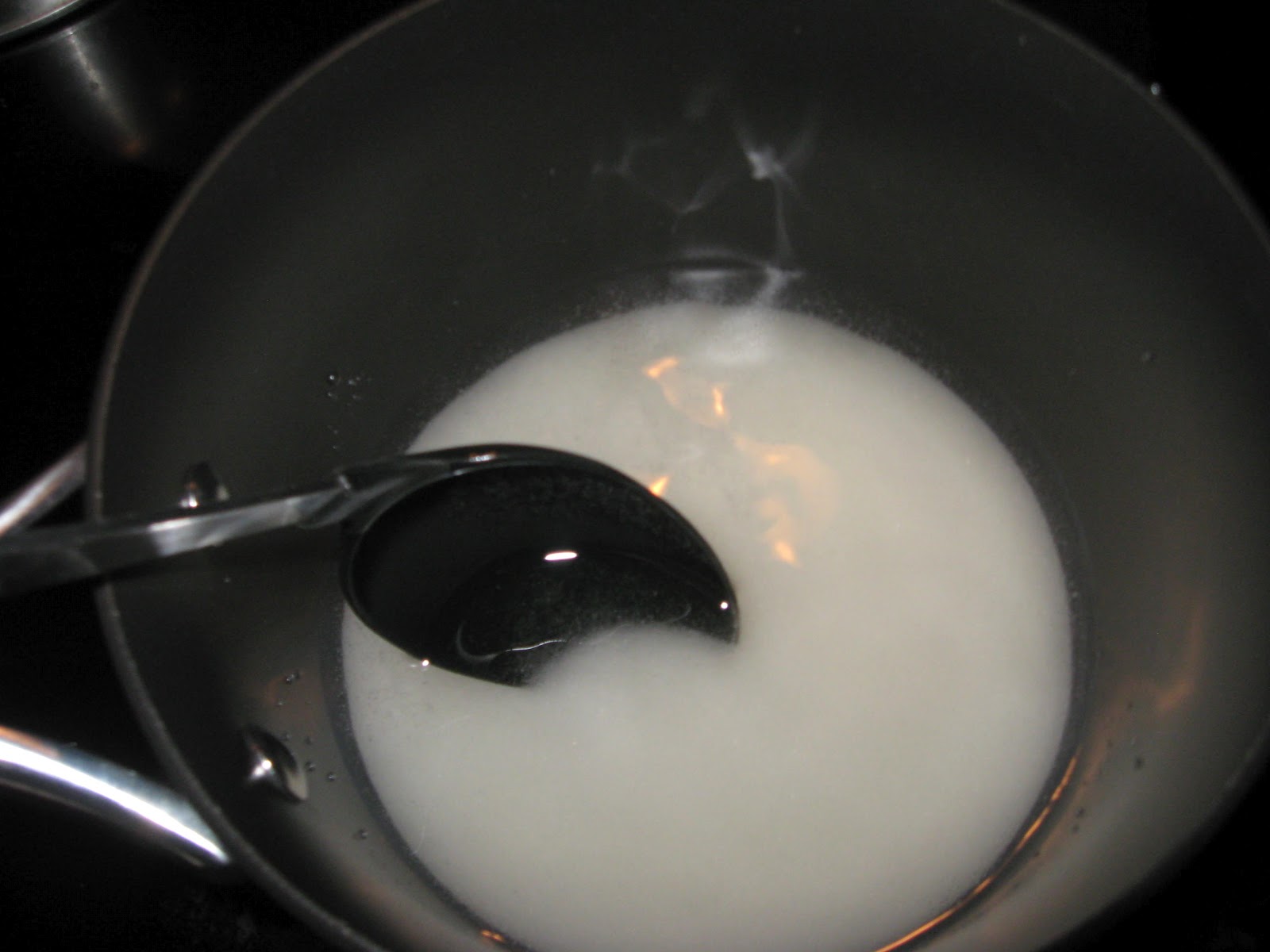 You know it’s done when the sugar has completely dissolved and it looks clear.