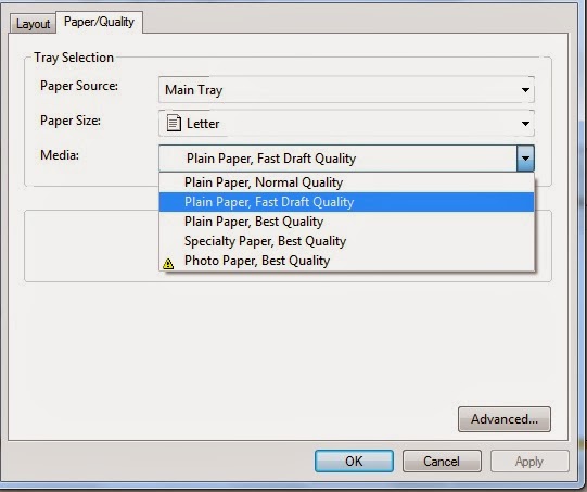 You can also set your printer to print Fast Draft. It prints at a lower resolution but still looks great for everyday printing. If you are doing an important project or printing photos you can go back in and temporarily change it back to Normal or Best quality. Changing to Fast Draft saves a ton of ink. You’ll be amazed how much longer your ink cartridge lasts.
