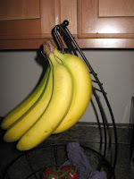 3. If you have a banana hanger use it! Bananas give off gasses that make them ripen and turn brown, they need good air circulation around and under them. I actually use a banana hanger, here is a picture of mine.