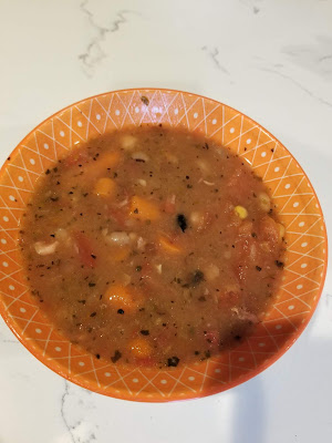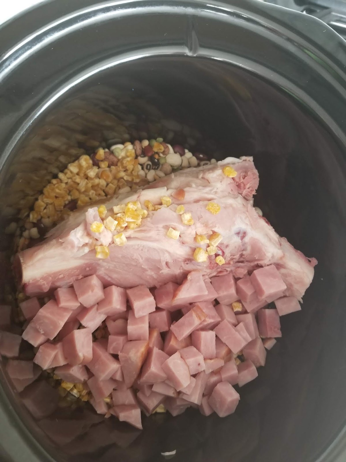 I also tried a ham chili of sorts just using ingredients I had on hand. I threw in onions, garlic, some dried beans and some dehydrated corn, stewed tomatoes, and chili spices.