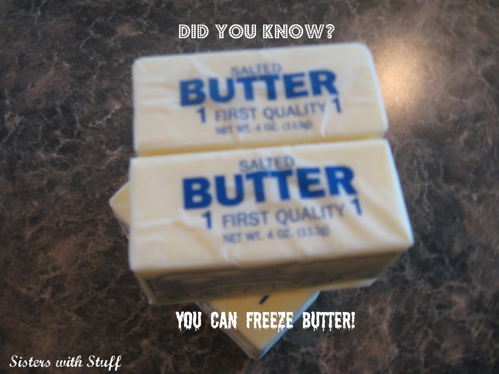 As you can see I don’t even buy the same brand all the time, whatever is cheapest. We use a lot of butter in baking so I always try to have at least 3 or 4 boxes in the freezer. I have read that you can freeze other dairy products like milk and eggs, I have not tried to freeze either of those so I can’t give you any good honest advice on that subject.