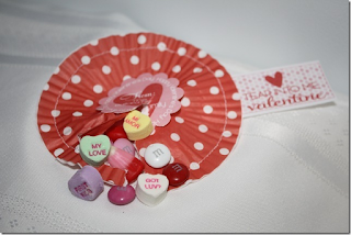 I love these and they look so simple to make and a really budget-friendly craft for adults and kids. One of my wonderfully creative friends shared this with me, here are her photos and tutorial for Valentine Candy Pouches made from Cupcake Liners.
